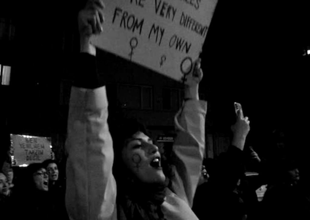 Le 8 mars 2024, journée internationale du droit des femmes, les mouvements féministes d’Istanbul manifestent dans les rues de la ville. Le film témoigne, dans ce contexte révélateur, de blocages contre lesquels la jeunesse, et en particulier celle montrée ici, peut jouer un rôle essentiel.